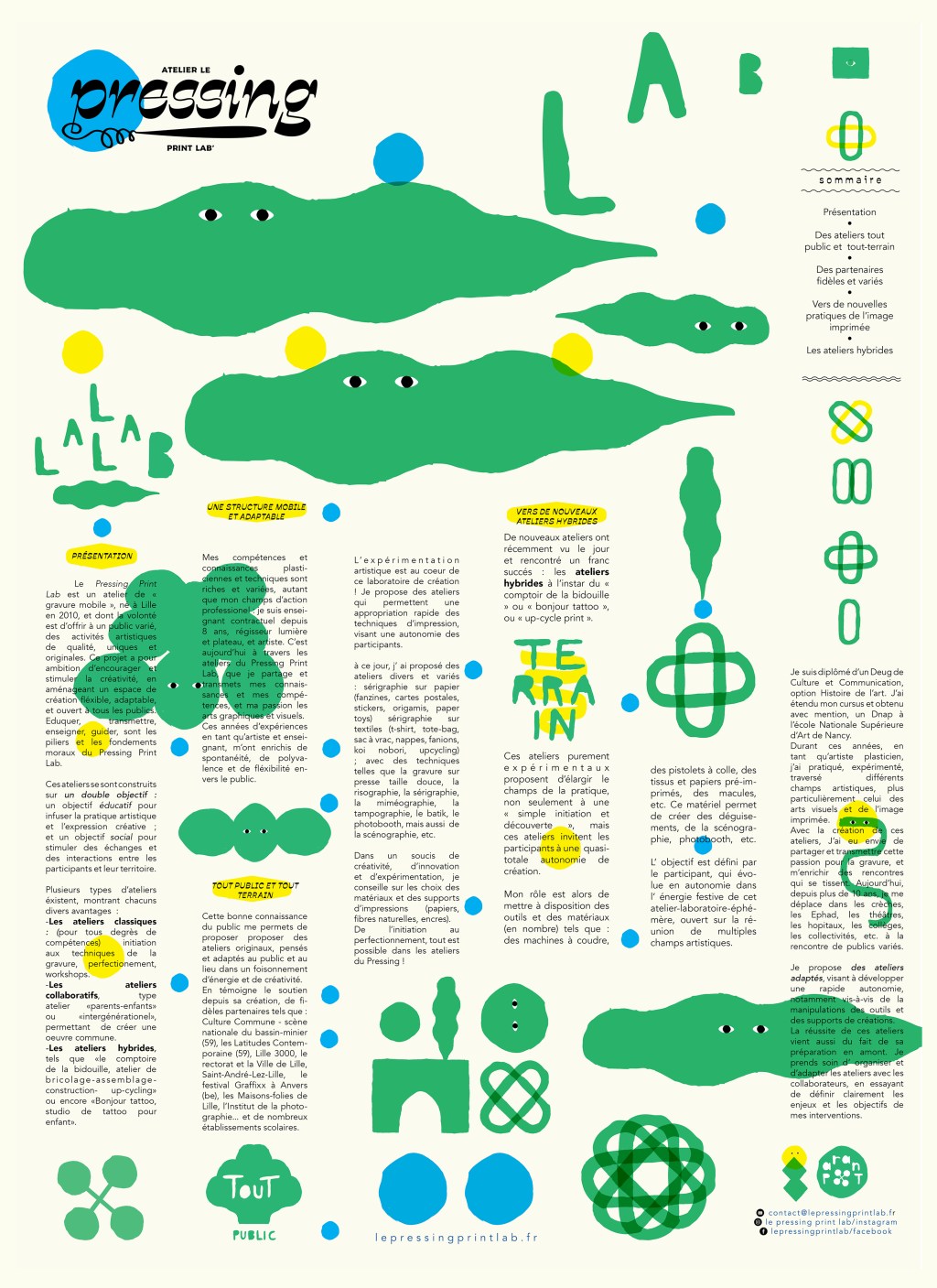 Le Pressing Print Lab, atelier mobile de pratiques artistiques, est un véritable laboratoire d’expression créative qui a pour vocation de mêler l’art, l’innovation et la proximité avec le public.