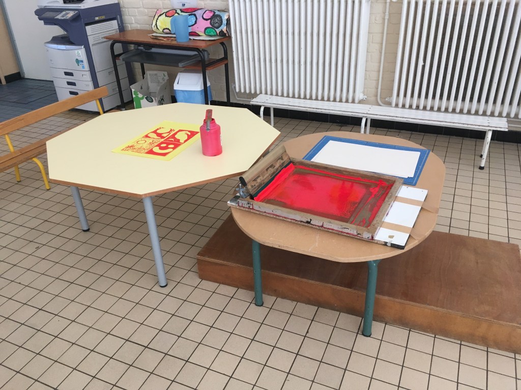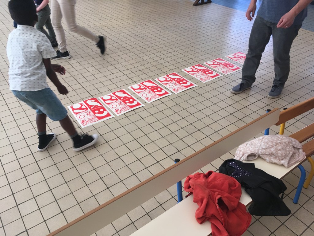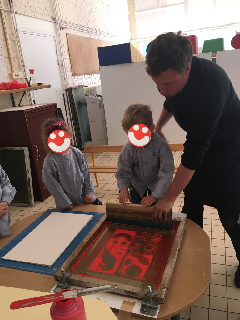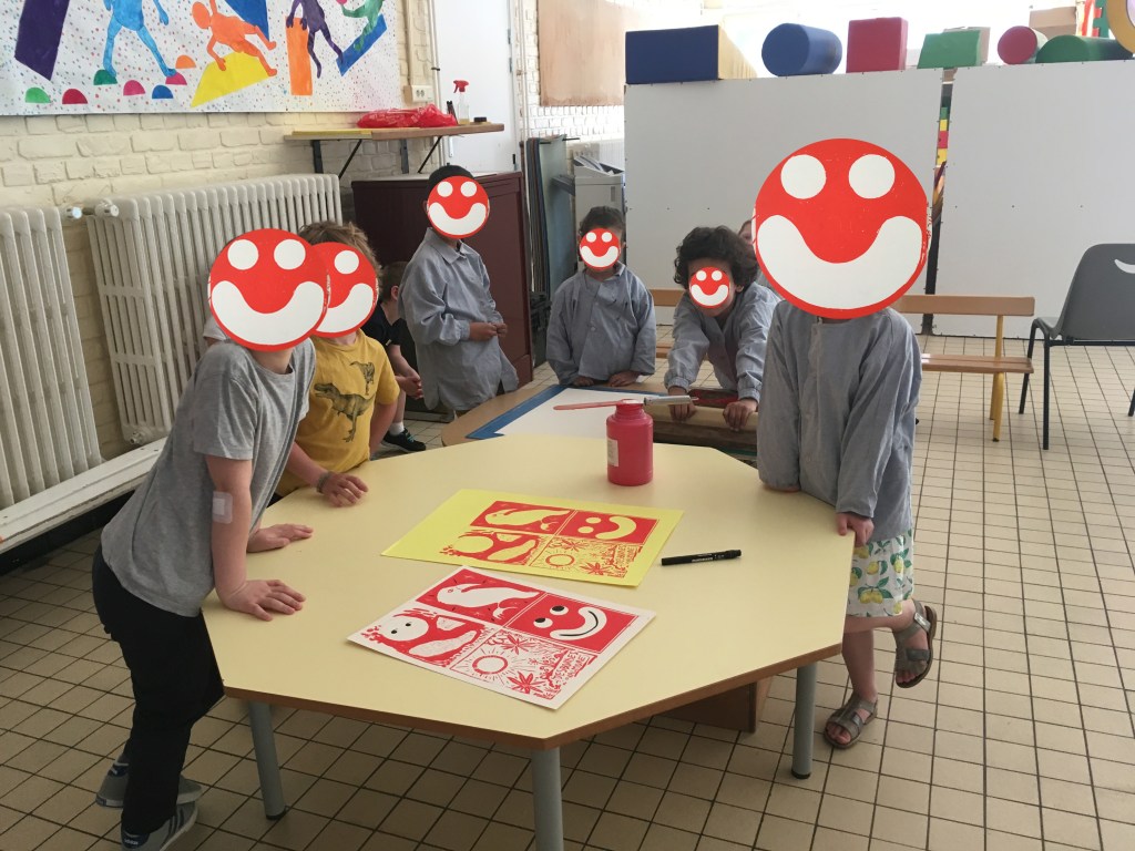 Cette semaine fut consacrée à la gravure et à l’image imprimée ! De la toute petite section à la grande section on a découvert et pratiqué la gravure: au programme et en concertation avec l’équipe pédagogique ( que je remercie profondément au passage pour leur implication et leur gentillesse !), donc, au programme : sérigraphie, monotype, collagraphie et tampographie ! En avant première, avant l’exposition finale, quelques images assez drôles :