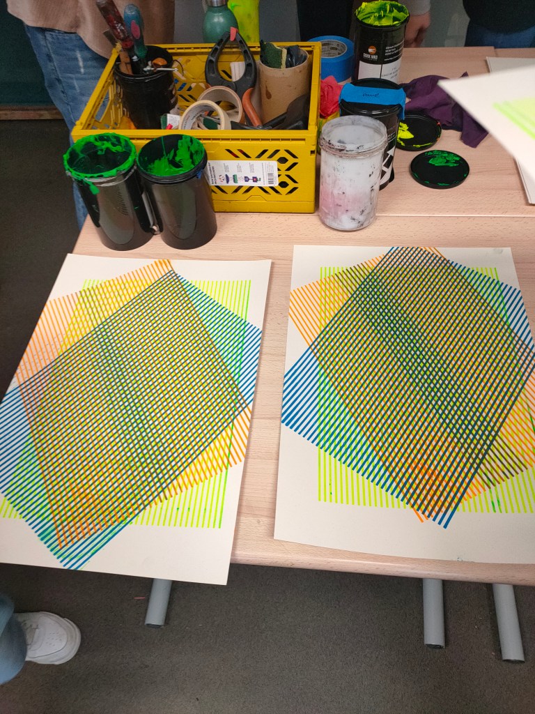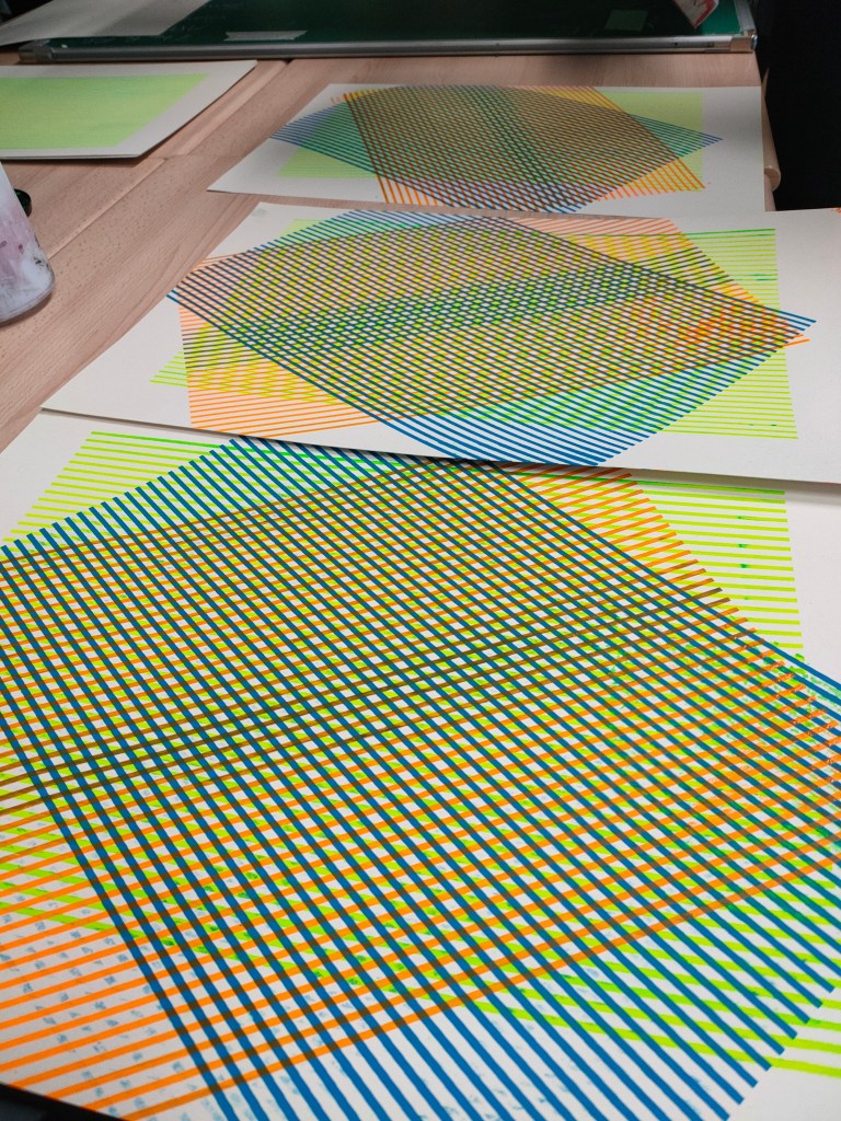L’atelier sérigraphie « moiré » mets à l’honneur l’art de l’erreur créative. Les participants sont invités à réaliser des erreurs d’impression « volontaires », afin de les analyser et pouvoir opérer par acumulation d’impression de nouveaux effets d’optiques.